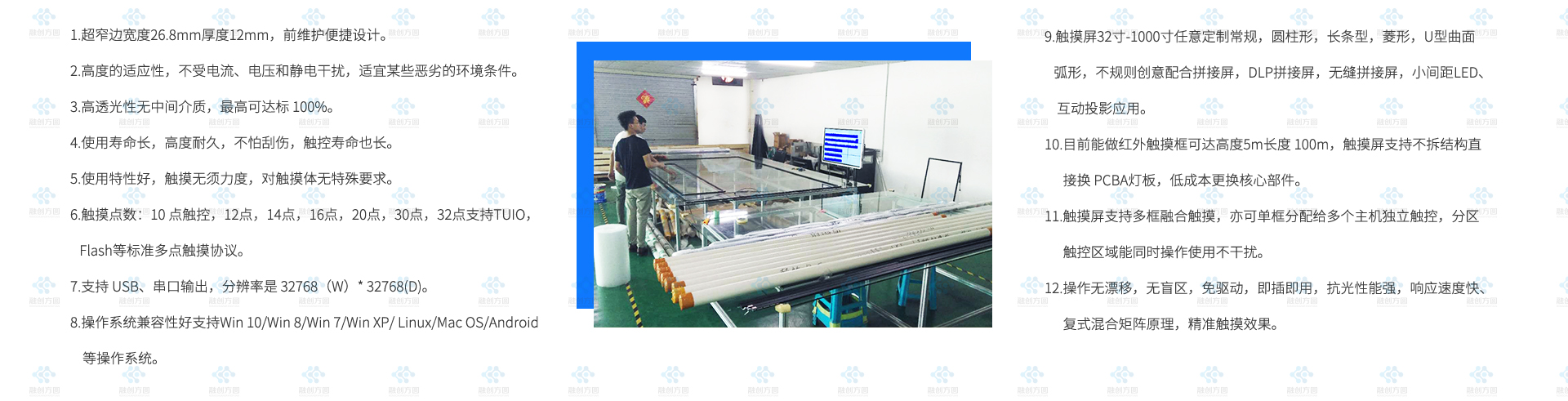 南京是江蘇省省會,是一座歷史文化名城,融創(chuàng)方圓2×4大尺寸紅外多點觸摸屏坐落這座城市,這套紅外觸摸屏對角線有199寸超大尺寸紅外觸控屏結合8臺拼接屏...